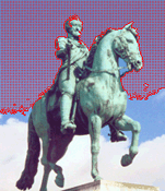 Invert Selection takes any part of the circle that overlaps the previous selection and removes it from the selection and otherwise adds the circle. If all the pixels in the bronze statue were selected and we wanted to deselect that and instead select all pixels not in the statue, we could use invert selection and draw a rectangular selection box that covered the entire image.