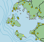Choose the type of items that are to be selected by pushing the selection filter buttons for the desired types. The buttons above show selection enabled for points and disabled for areas, lines and pixels. If we drew a selection rectangle over a region in the map that contained all four types of items, only the points within the rectangle will be selected. Areas, lines and pixels within the rectangle will be ignored.