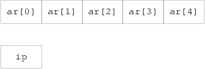 int ar[5], *ip;In that example, the pointer is made to point to the member of the array ar whose index is , i.e. the fourth member. This is