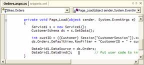 f. Double-click the 4.2 Orders Page_Load() item in the Guided Tour toolbox. The code should now look like this: