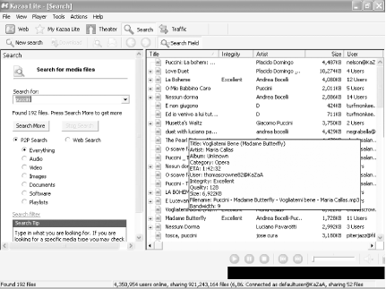 One solution is to get an ad-free and spyware-free version of the program, called Kazaa Lite, shown in Figure 10-6. In all other respects, it looks and functions like Kazaa and taps into the same file-sharing network, but it doesn't carry the ads and spyware. It's free and available for download from https://doa2.host.sk.