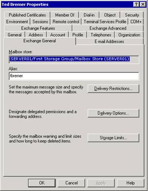 When you need to set individual message settings for mail-enabled recipients, start by navigating to the Exchange General tab for that recipient (see Figure 4.15).