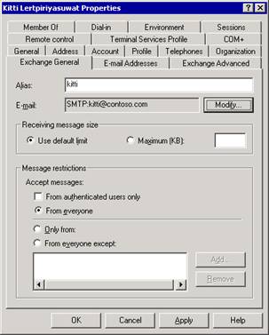 The Exchange General tab for mail-enabled recipients is slightly different than that for mailbox-enabled recipients. It has fewer features, omitting those features that apply only to mailbox-enabled users. For more information, see 'Configuring Message Settings for Mailbox-Enabled Recipients' earlier in this chapter.