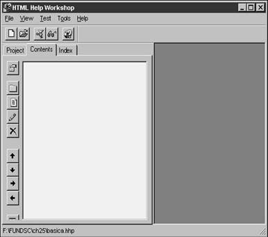 always accept the default "Table of Contents.HHC" name. You'll then see the empty Contents tab, as shown in Figure 25.12.
