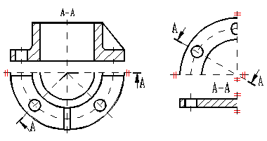 Proiectiile combinate 1/2 vedere si 1/2 sectiune nu necesita notarea traseului de sectionare.