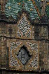 (florale), in combinatie cu ceramica de Zsolnay. Remarcabile sunt si