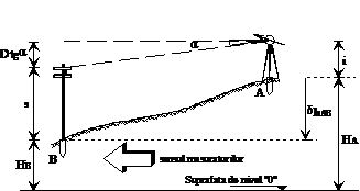 Figura - Nivelment trigonometric cu vize ascendente. |