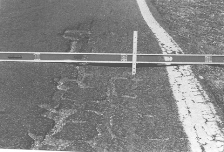 Insa, un defect in profilul transversal ce afecteaza siguranta circulatiei este degradarea acostamentelor cu aparitia ruperilor de margine ale carosabilului (figura 53).