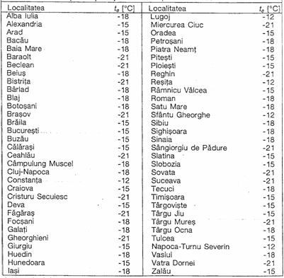 Tabelul 2. Temperaturile conventionale Te ale aerului exterior pentru principalele localitati din Romania