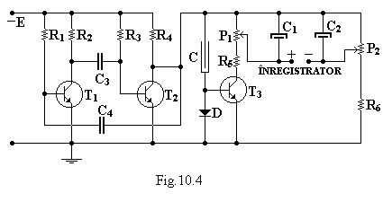 circuitul lui T2 rezistorul R6. Ca sursa de c.c. se