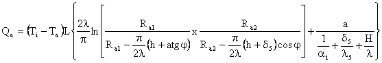 QS - flux termic cedat prin pardoseli asezate direct pe sol, care pentru constructii cu forme regulate se calculeaza cu relatia: