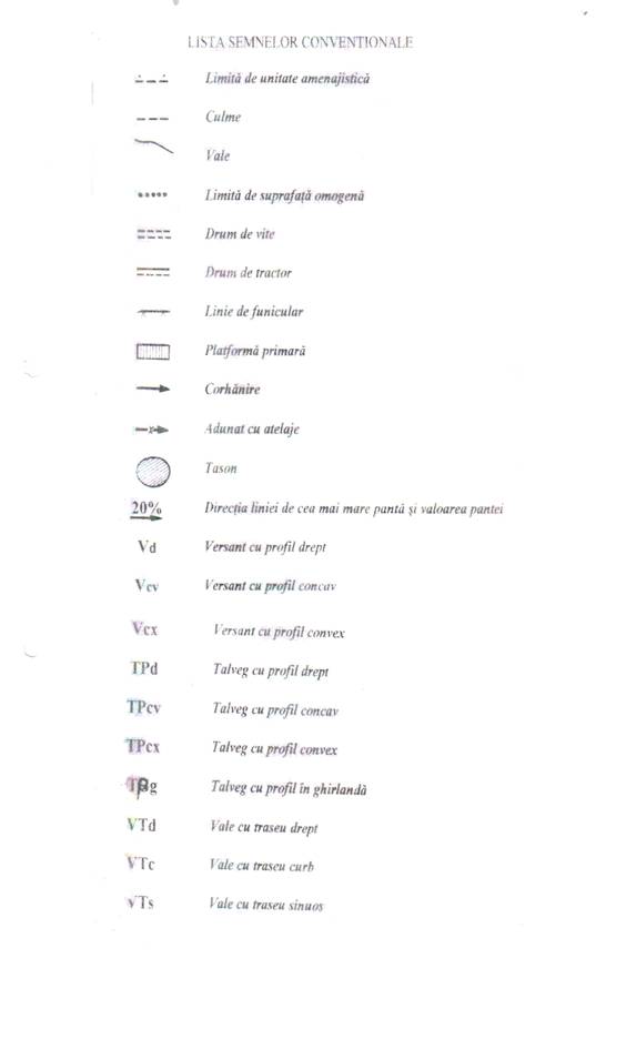 Ø Delimitarea pe versanti, platouri si terase a suprafetelor omogene (suprafete caracterizate printr-o directie unica de scurgere a apelor si o panta uniforma) si inscrierea pe schita a directiilor liniilor de cea mai mare panta, a inclinarii terenului si a profilului acestor suprafete;
