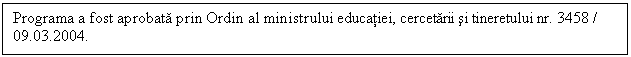 reperele impuse de OMECT 5723/23.12.2003 privind aprobarea Planurilor cadru de invatamant pentru clasele a IX-a si a X-a;