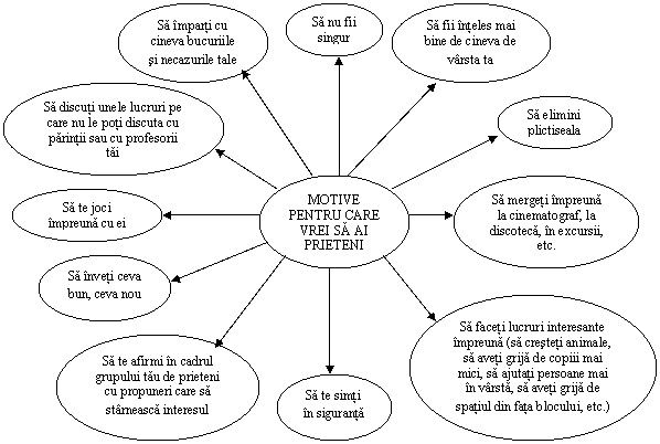 motive pentru care vrem sa avem prieteni; apoi cate un reprezentant al fiecarei