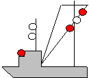 ii) cand exista doua lumini de catarg, lumina din pupa trebuie sa se afle pe verticala luminii din prova si cu cel putin 4,5m mai sus decat aceasta.