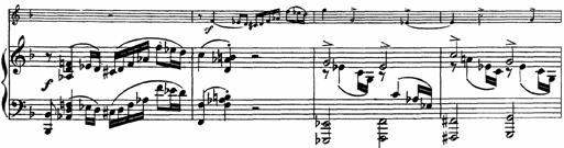 Ex. muz.: R. Schumann - Sonata pentru pian si vioara op. 121, partea III, mas. 1 - 8.
