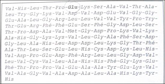 O maladie ereditara denumita anemie falciforma, apare datorita unei erori in secventa acizilor aminati ce fac parte din proteina hemoglobinei. Persoanele care sufera de aceasta maladie, al 6-lea aminoacid din lantul de aminoacizi este valina (Val), in loc de acid glutamic(Glu). Aceasta atat de mica diferenta antreneaza o modificare a proteinei si implicit a proprietatilor fizice si chimice ale hemoglobinei. Aceasta anomalie a hemoglobinei are ca efect deformarea globulelor rosii sanguine (care in mod normal au forma rotunda si de piscot) in forma de secera ceea ce antreneaza numeroase probleme in transportul oxigenului.
