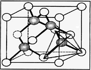 Acest aranjament tetraedric al atomilor (Figura 1) constituie o retea periodica de simetrie cubica (cfc) in care toate legaturile C-C sunt de tip s; acest lucru face ca diamantul sa aiba o structura mai compacta (densitate 3,515 g/cm3) decat cea a grafitului (2,27 g/cm3) unde legaturile s se afla numai in interiorul aceluiasi strat.