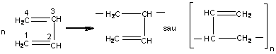 Reactia de polimerizare are loc in pozitiile 1-2, 3-4, 1-4 si conduce la formarea de polimeri. Aditia 1-4 poate fi cis sau trans.