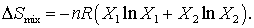 unde X1 este fractia molara a componentului 1. Exista o expresie echivalenta pentru expresia celui de-al doilea logaritm, iar entropia amestecului se poate scrie ca: