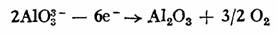 La anod, curentul este transportat de ionii AlF si AlO3 , insa se vor descarca ionii AlO3 , cu eliberare de oxigen:
