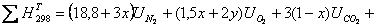 Aceasta caldura de reactie trebuie sa fie egala cu suma entalpiilor produsilor si azotului (si oxigenului in cazul unui exces de aer) intre 298,16 si T K