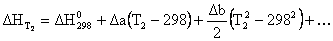 ΔCp = Δa + ΔbT + ΔcT2 + (4.100)