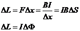 Fie un conductor liniar, parcurs de un curent liniar cu intensitatea I, aflat intr-un camp magnetic de inductie B. Pentru deplasarea uniforma a conductorului in campul magnetic este necesar sa se efecteze lucrul mecanic: