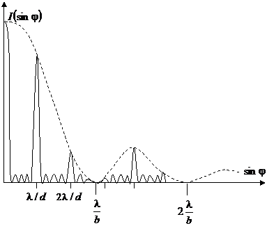 unde b este latimea unei fante, d este distanta dintre fante, N este numarul de fante.