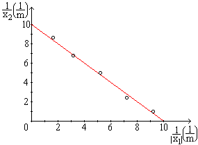 Intersectiile cu axele reprezinta inversul distantei focale.