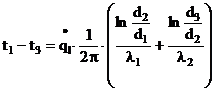 In regim stationar, fluxul liniar de caldura este egal in cele 2 straturi cilindrice.