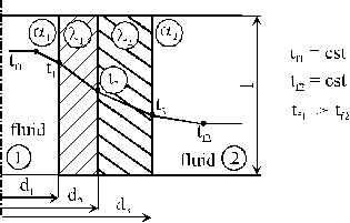 Se considera un perete plan neomogen format din doua straturi de grosimi d si d avand coeficientii de conductie l si l constanti. Se cunosc temperaturile suprafetelor exterioare t1 si t3.