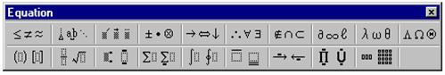 din lista se alege Equation, apoi se apasa pe butonul Ok si va apare o fereastra a editorului de ecuatii;