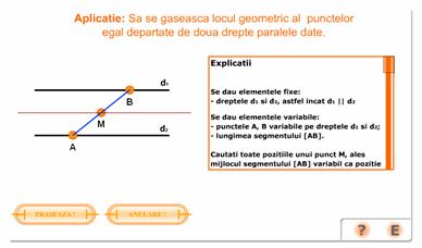 rezolvarea problemei referitoare la gasirea locului geometric al punctelor egal departate de doua drepte paralele date.