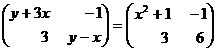Exemplu: Sa se determine numerele reale x, y astfel incat sa avem egalitatea de matrici