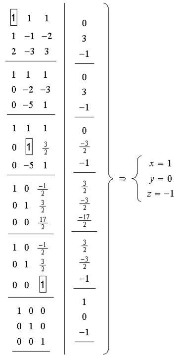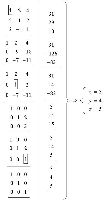 Matricial, operatiile pentru fiecare pivot sunt urmatoarele (folosind matrici elementare):