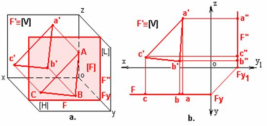 Fig. 39. Planul frontal : a-in spatiu, b-in epura