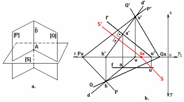 Fig.36. Urmele planului : a- in spatiu, b- in epura