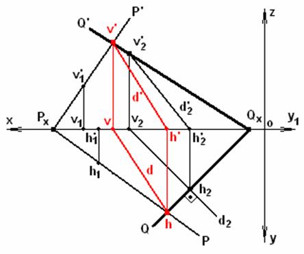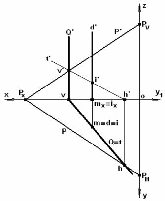 aceasta fiind totodata si urma orizontala a planului, P d. La intersectia urmei