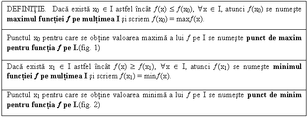 Punctul x0 de maxim sau x1 de minim se numeste punct de extrem pentru functia pe I