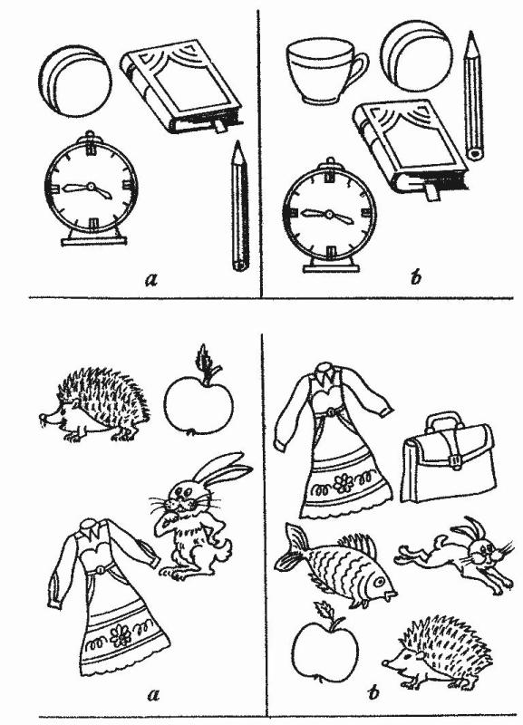 Copilului i se demonstreaza 10 imagini a diferitor obiecte cunoscute (desenul 2). Demonstrarea se face cite una, timp de 1-2 secunde.