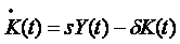 Partea din venitul agregat (output) destinata investitiei este considerata exogena si constanta, s, iar rata uzurii capitalului este d. Astfel: