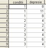 Se selecteaza "depresie" si se apasa butonul ►de langa caseta "Dependent List" - pentru a introduce parametrul in caseta.