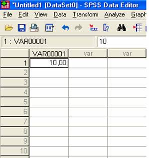 Aceasta este fereastra Data Editor a SPSS-ului si este un spatiu de lucru cu linii si coloane in care pot fi introduse datele.