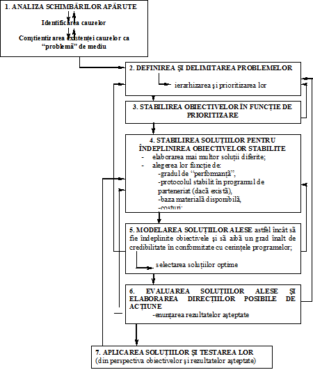Figura 1.b. Cele 7 etape ale abordarii sistemice de analiza a problemelor de mediu in cadrul Programului de Monitoring al Mediului