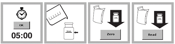 10.La maxim 8 min dupa expirarea timpului introduceti proba in suport si apasati READ pentru a citi concentratia in mg/l Mn