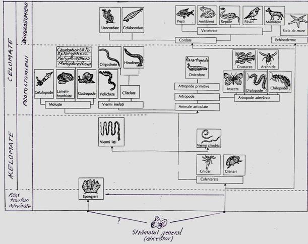 Fig. 27. Un model simplificat de arbore filogenetic al nevertebratelor si vertebratelor.