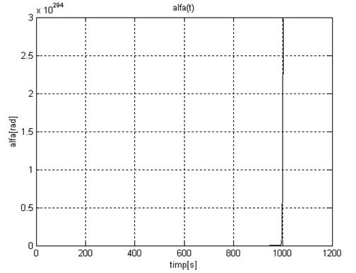 h=figure;plot(t,alfa);title('alfa(t)');xlabel('timp[s]');ylabel('alfa[rad]');grid;