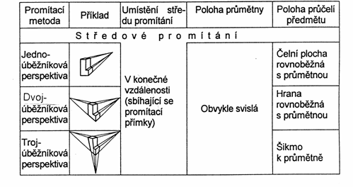 V technické praxi se užívá řada promítacích metod. Jejich přehled je uveden v tabulce 3 -1.