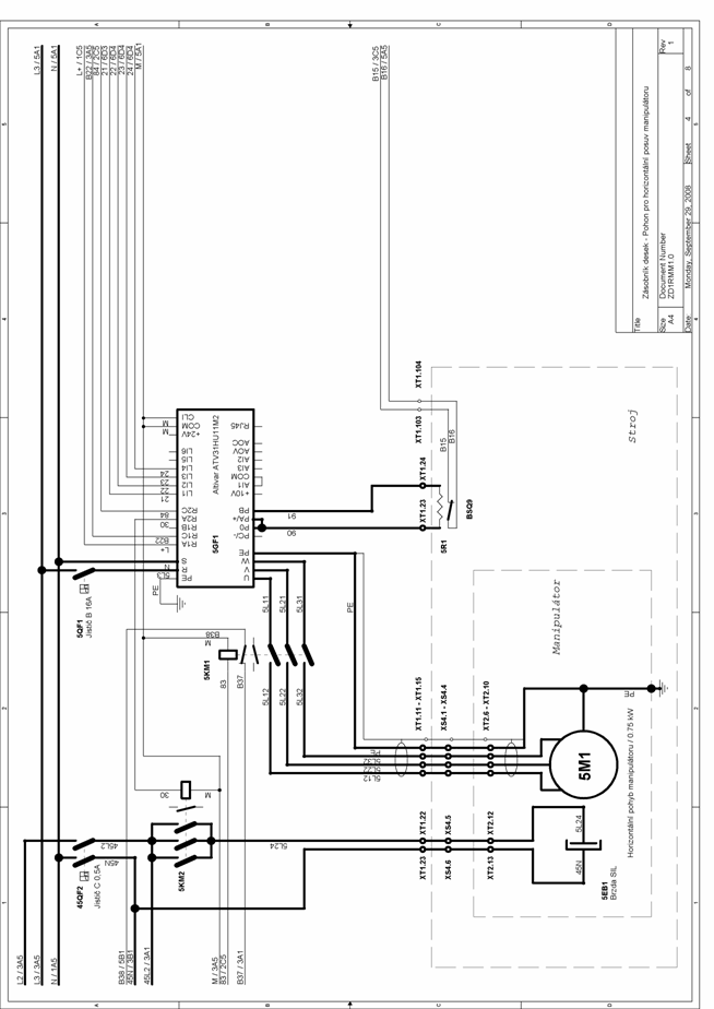 Připojení stroje na síť: Nejdříve překontrolujeme provozní napětí 3x400V a kmitočet 50Hz. Pokud napětí souhlasí můžeme stroj připojit tak, aby připojení splňovalo všechny předpisy a normy. Kolísání napětí max. o ±5% jmenovité hodnoty zaručuje správnou funkci stroje. Přívodní kabel je nutno vést tak, aby přes něj nepřejížděla manipulační nebo dopravní technika a aby nemohl být zdrojem úrazů.Před uvedením stroje do provozu musí být vyzkoušena správná funkce ochrany před nebezpečným dotykovým napětím.